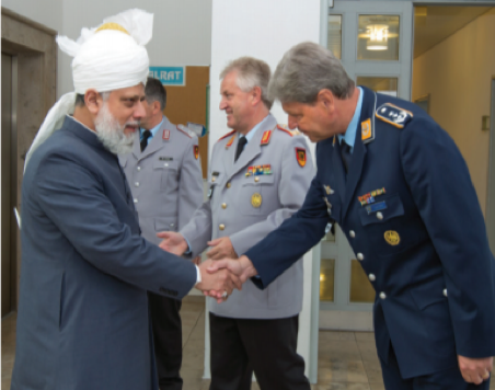 The following are extracts from a lecture delivered by Hazrat Mirza Masroor Ahmad, current Khalifa of the Ahmadiyya Muslim community, at the military headquarters in Koblenz, Germany, 2012, to an audience of parliamentarians and military leaders. The images below are taken from that event. The full lecture can be found in the caliphs book, “World Crisis and the Pathway to Peace.”